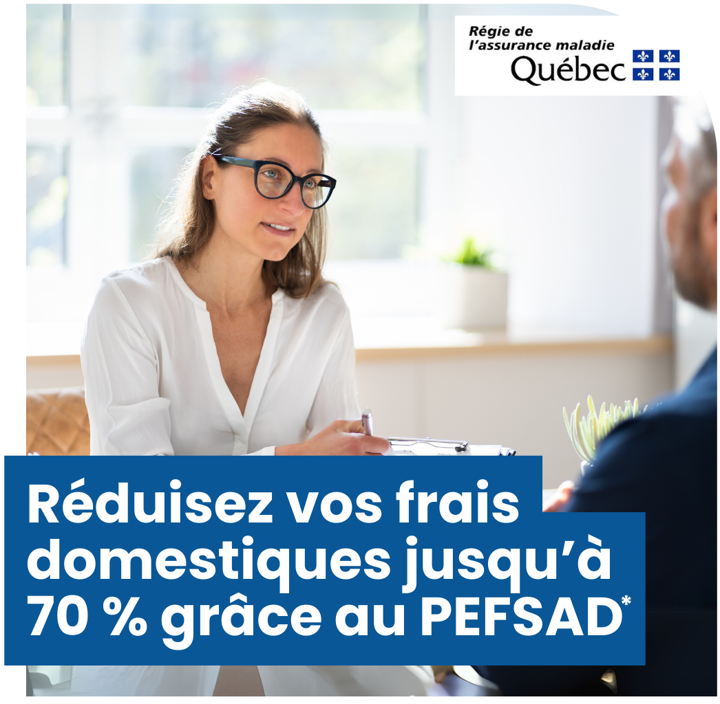 Accessible à tous dès 18 ans, le Programme d’exonération financière pour les services d’aide domestique (PEFSAD)* peut réduire jusqu’à 70% vos frais pour des services à domicile comme l’entretien ménager, la lessive, ou la préparation des repas.